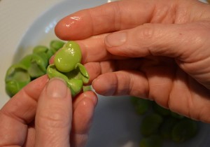 Fava-Bean-Tokyo-Turnip-Salad-shucking-beans-popping